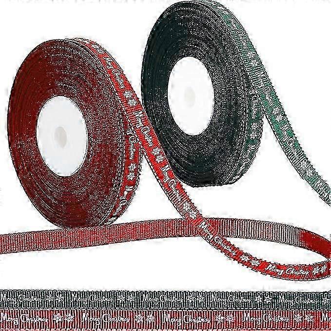 2 Rolls 20m Merry Christmas Ribbon Grosgrain Packaging Rope Merry Christmas Ribbon with Snowflake Pattern for Christmas Gift Party DIY Crafts Packagin