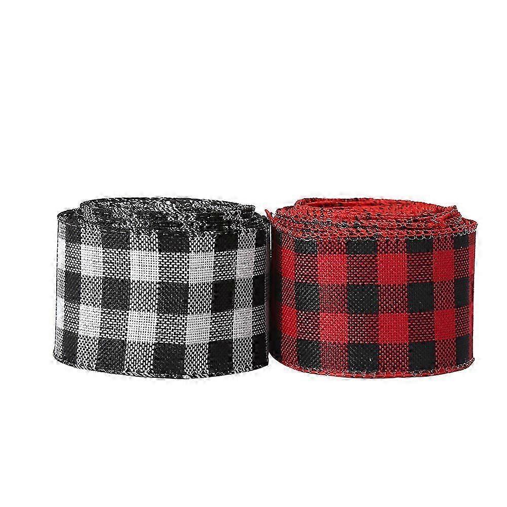 2 Rolls 5 x 500cm Burlap Wired Ribbon Christmas Wrapping Ribbon Classic Wired Ribbon Cloth Ribbons for Party Decoration for Christmas Party Gift Wrapp