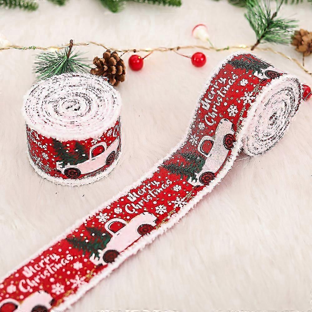 2 Rolls 5 x 500cm Burlap Wired Ribbon Christmas Wrapping Ribbon Classic Wired Ribbon Red Green Snowflake Fabric Ribbons for Floral Bow Craft Party Dec