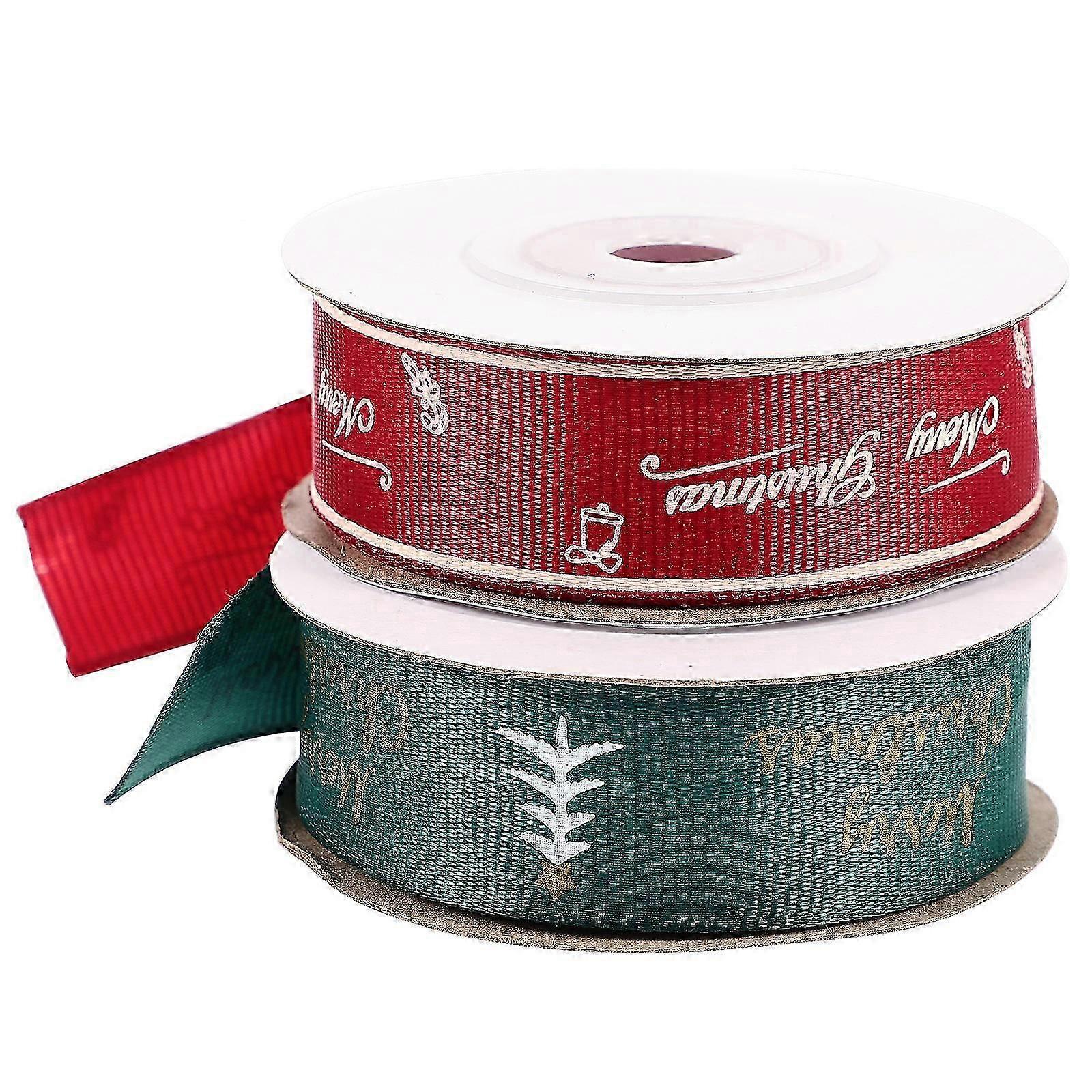 2 Rolls Christmas Decorative Ribbon Wide Wrapping Ribbon for Crafts, Bouquets, and Gift Packaging Durable Green Tree Print