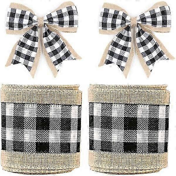 Durable Material with Wired Edge: These black and white checkered ribbons are made of coarse linen and equipped with iron wires for easy rolling, not easy to wear, fade, wrinkle, tear, or spread, durable.Classic Plaid Pattern Design: Our wired edge Christmas ribbons are based on a natural fabric color background, designed in a classic style, decorated with plaid pattern in the middle, which are not easy to become unfashionable, making these ribbons suitable to be decorations, novel and attractive, perfect for matching with your various items. Perfect for creating a farmhouse theme for Christmas.Multifunctional Gingham Ribbon: These checkered ribbons are suitable for classroom farmhouse decoration, Christmas craft decoration, floral bows, Christmas wreaths, Christmas tree bows, gift wrapping, flowers, bouquet wraps, wedding baskets, costume accessories, garland crafts, you can also apply them to decorate doors, windows, wardrobes, sewing accessories, invitation embellishments, and much more.Easy to Use: Just need a pair of scissors as our ribbons can decorate well. Our checkered ribbon is durable enough and does not fray like most ribbons, very easy to handle as it is wired on the edges and easy to cut too. The edges are well sewn so the ribbon lasts a long time. making it convenient for you to decorate your gifts or flowers with our ribbons and a pair of scissors whenever and wherever possible. Perfect for making bows.Package Included: You will receive 2 rolls of buffalo plaid wired edge ribbons in the package, enough rolls for you to carry out your decoration projects. 2 rolls of ribbon can be packed well and fixed with a pin, convenient for you to use and store. Sufficient quantity for you to decorate your festival crafts.Plaid patterns, full of artistic and retro charm.Made of linen weave, durable, lightweight, colorfast, and odorless.Wired edges for decorating your home and gifts more attractively.Our ribbons are well packed and fixed with a pin, convenient for you to use and store.2 rolls of Christmas plaid wired edge ribbons, sufficient quantity to meet your decoration needs.Christmas Burlap Ribbon: Classic and elegant ribbon designed in black and white checks, rustic wrap ribbon for vase decoration.Natural Wrap Ribbon Rolls: Christmas plaid burlap ribbon can be used to wrap special gifts.Product Size: the width is 6.3 cm and the length is 560 cm.Color: Black and white.