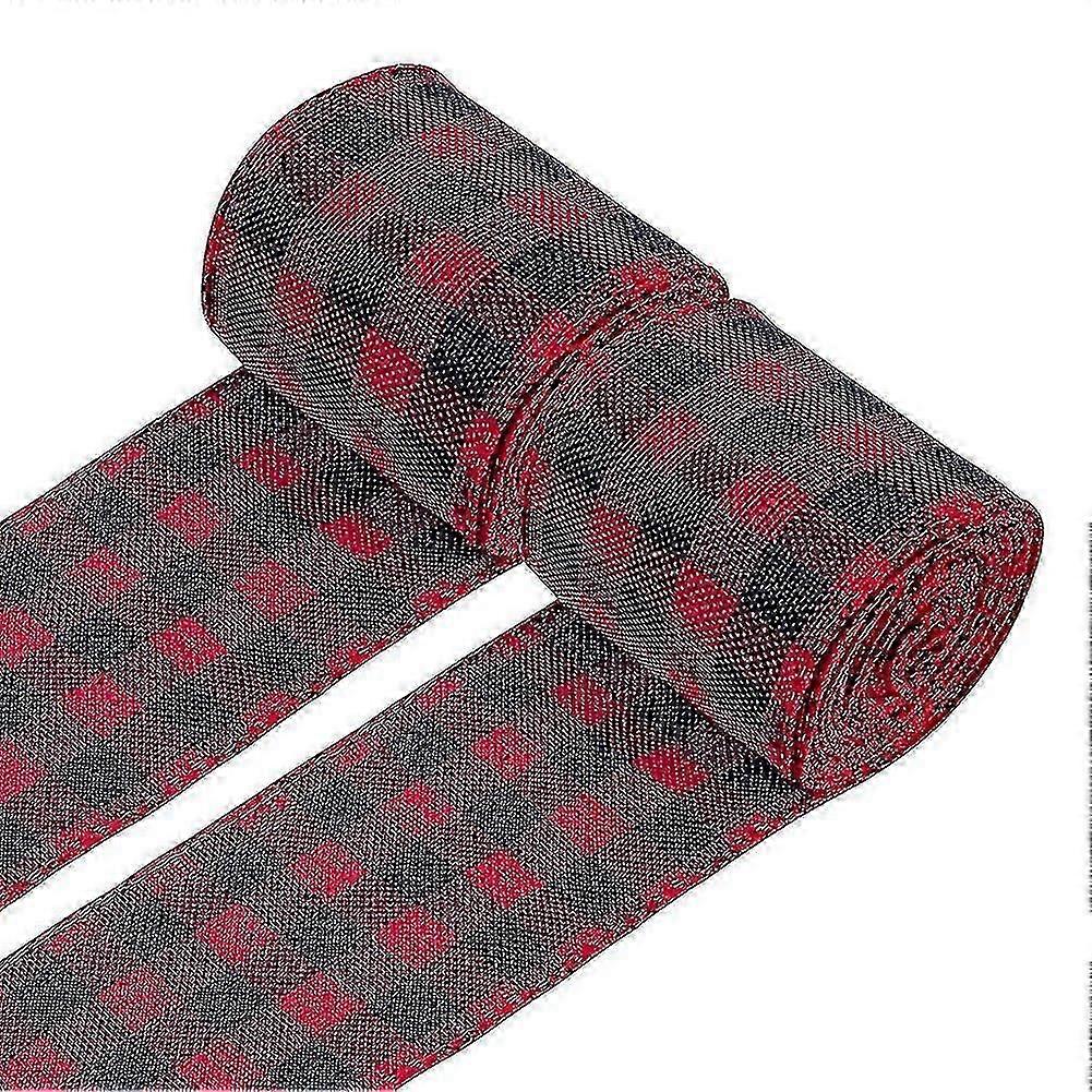 2 Rolls Christmas Ribbon, Christmas Burlap Ribbon Black And Red