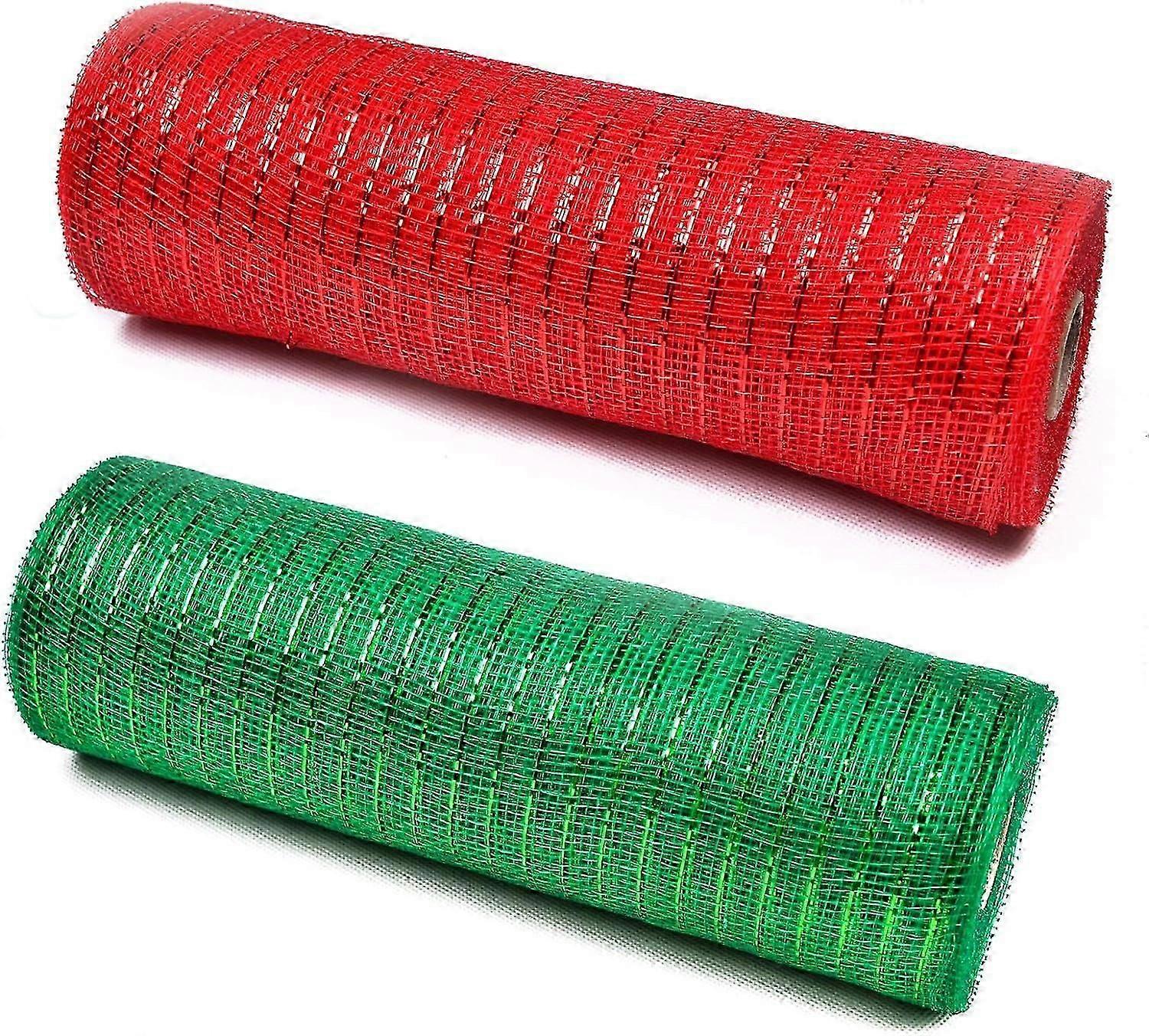 2 Rolls Christmas Ribbon Mesh Ribbon for Wreaths Making 10 yd Foil Rolls for Christmas Party Box Decor