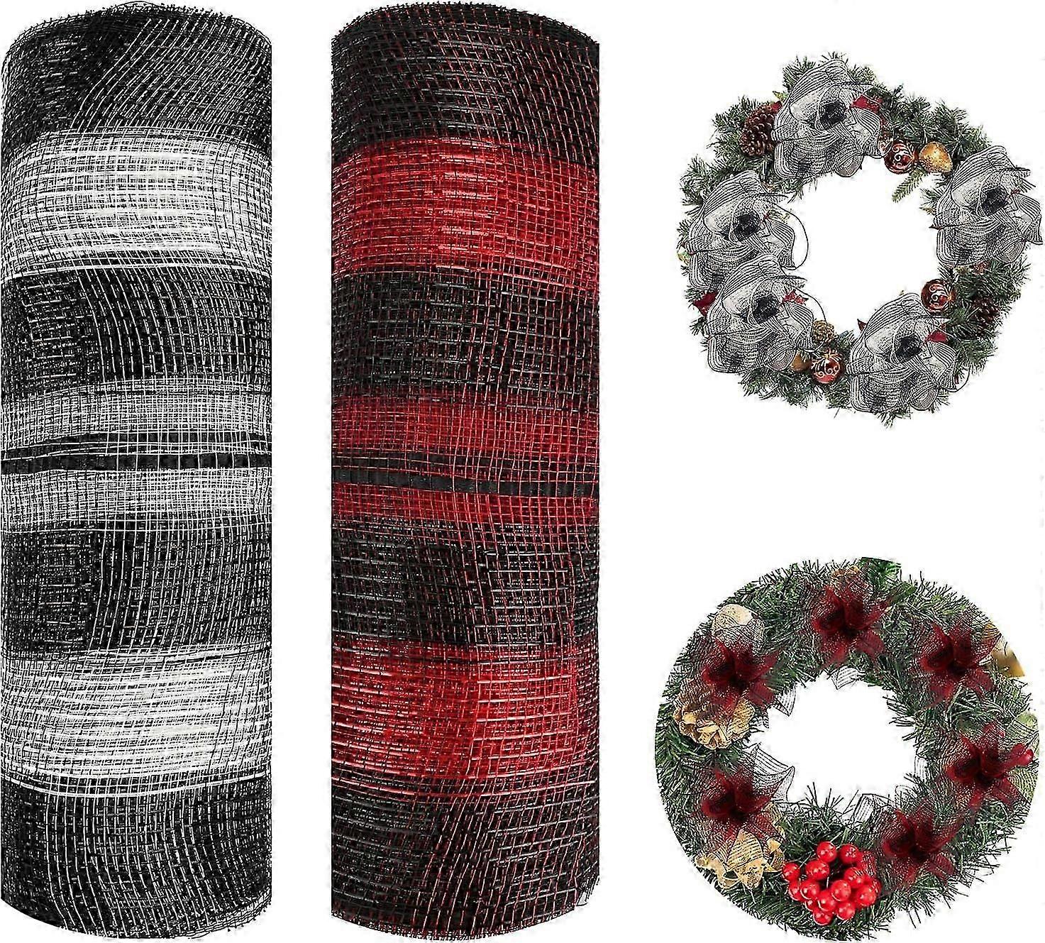 2 Rolls Christmas Ribbon Mesh Ribbon for Wreaths Making 10in x 10yd Metallic Foil Rolls for Christmas Party Box Decoration, Home Decoration, DIY Craft