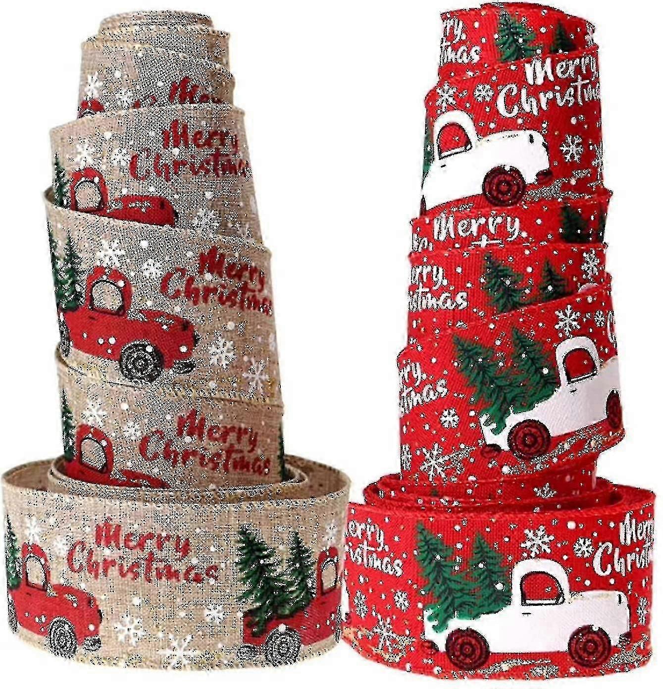 2 Rolls Christmas Vintage Truck Wired Burlap Ribbon, Christmas Decoration Ribbon For Gift Decoration Thanksgiving Wreath And Crafts C