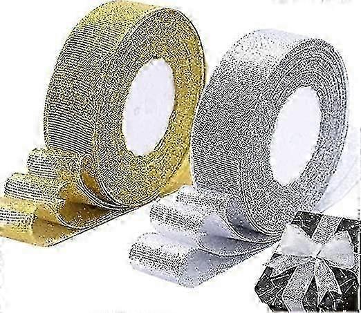 2 rolls of 25 size wide sparkling ribbons (2cm gold, silver) ribbons Gold ribbons Christmas ribbons Decorative ribbons for gift pa SZRH A-VH