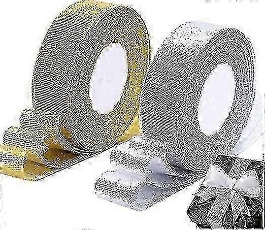 2 rolls of 25 yards wide sparkling ribbons (2cm gold, silver) ribbons Gold ribbons Christmas ribbons Decorative ribbons for gift packaging, making bow