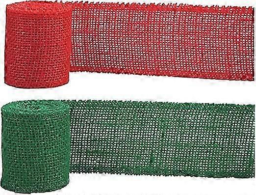 2 rolls of Christmas burlap silk ribbons, Heisen burlap jute fabric silk ribbons, red and green burlap silk ribbons, DIY handmade crafts, Christmas tr