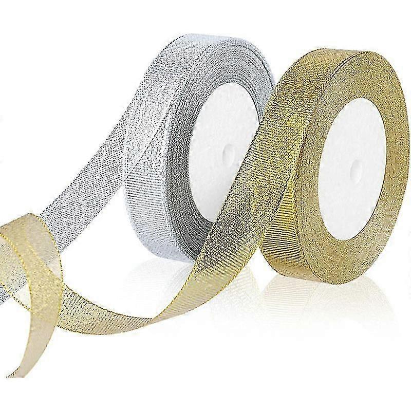 2 Rolls of Christmas Ribbon,Gold and Silver Organza Ribbons for Gift Wrapping Christmas Tree DIY for Crafts20mm x 22m