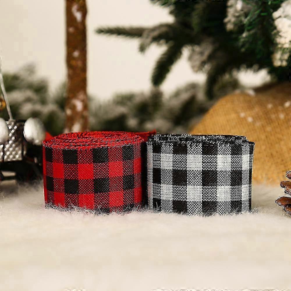 2 rolls of Christmas silk ribbon, black and white buffalo plaid ribbon and linen craft ribbon, suitable for Christmas DIY gift packaging Christmas par