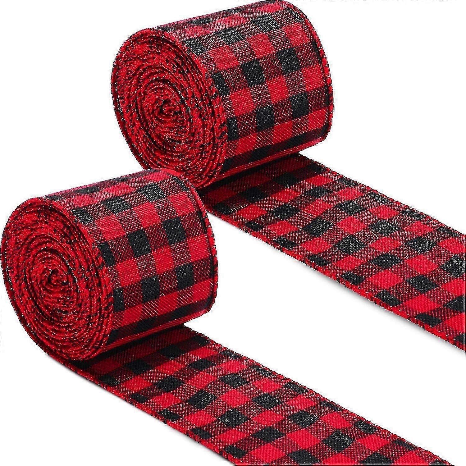 2 Rolls Plaid Burlap Plaid Wired Ribbon Christmas Wrapping Burlap Ribbon For Christmas Crafts Gift Diy Decoration, 472 X 2.5 Inch (red Black)