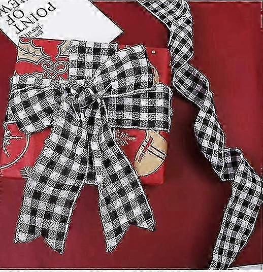 2 Rolls Plaid Burlap Ribbon Wired Christmas Ribbon Wrapping Ribbon For Christmas Crafts Decoration Floral Bows Craftblack And White