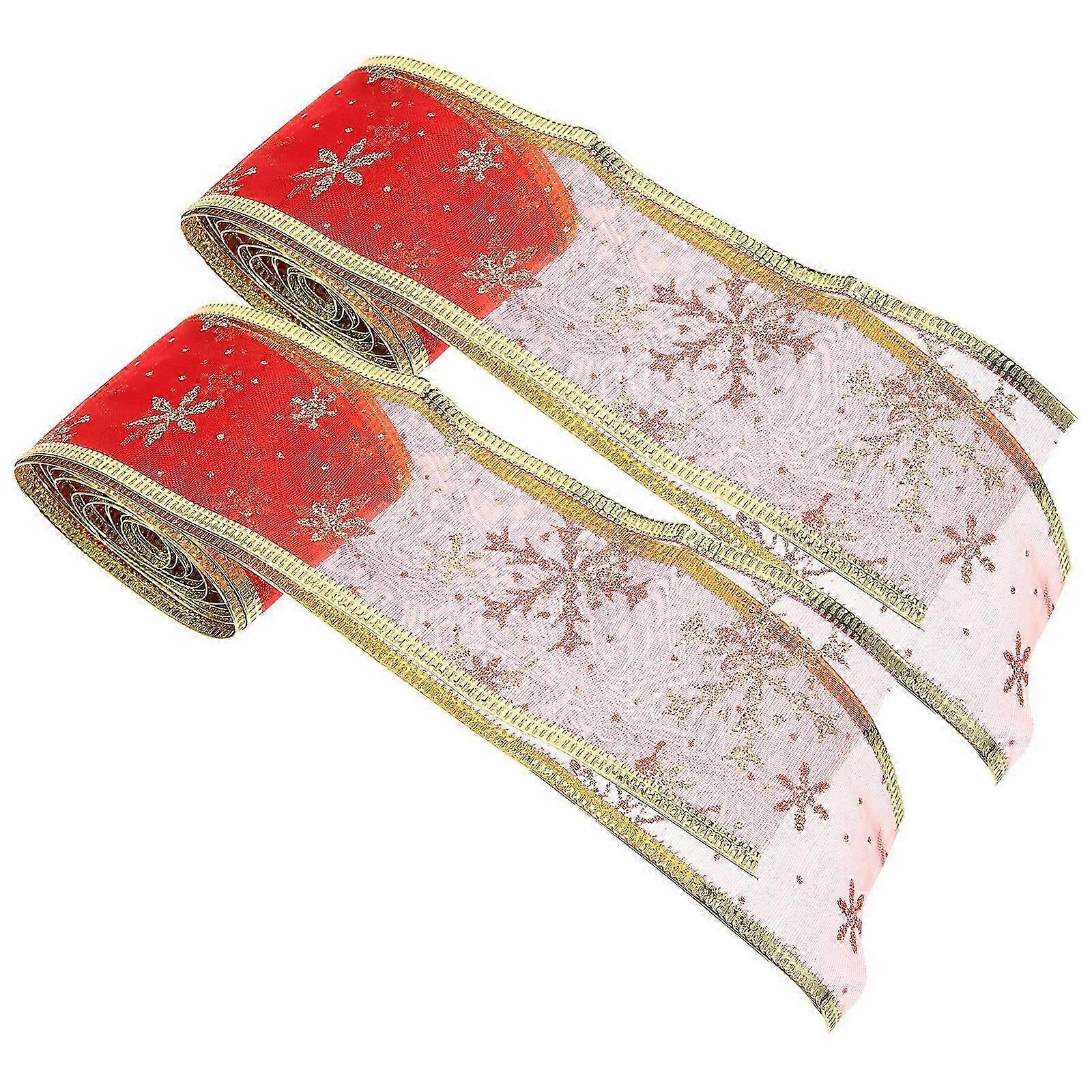 2 Rolls Red Gauze Christmas Printing Ribbon Christmas Festive Party Decor Star and Letter Printing Gift Packing Ribbon DIY Decoration Accessories