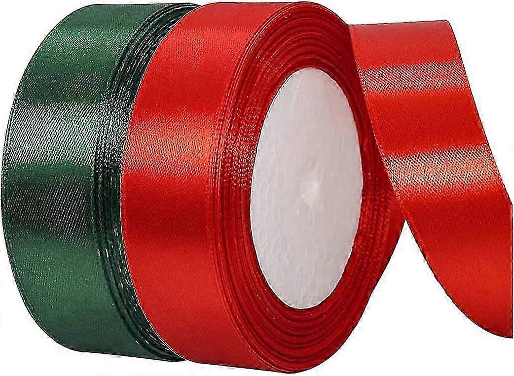 2 Rolls Satin Ribbon, 25mm Red and Green Ribbon Christmas Ribbon Fabric for Gift Wrapping Wedding Valentine Christmas(25 mm x 25 Yards) red and green