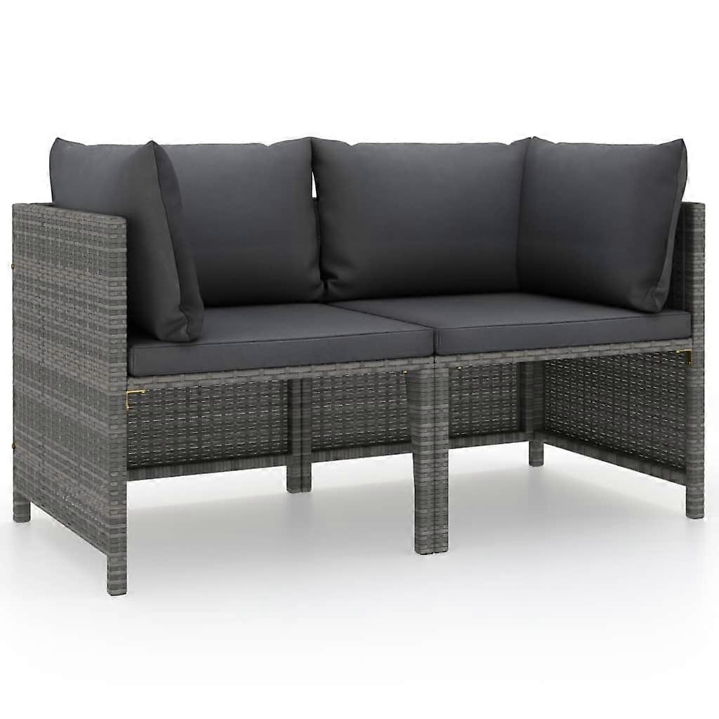 2-Sitzer-Gartensofa mit Polstern Grau Poly Rattan