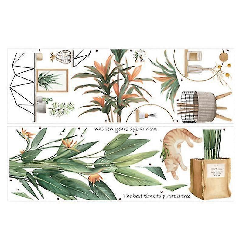 2 Sheets Wall Sticker Long-lasting Removable PVC Nordic Green Plant Wall Decal for TV Background