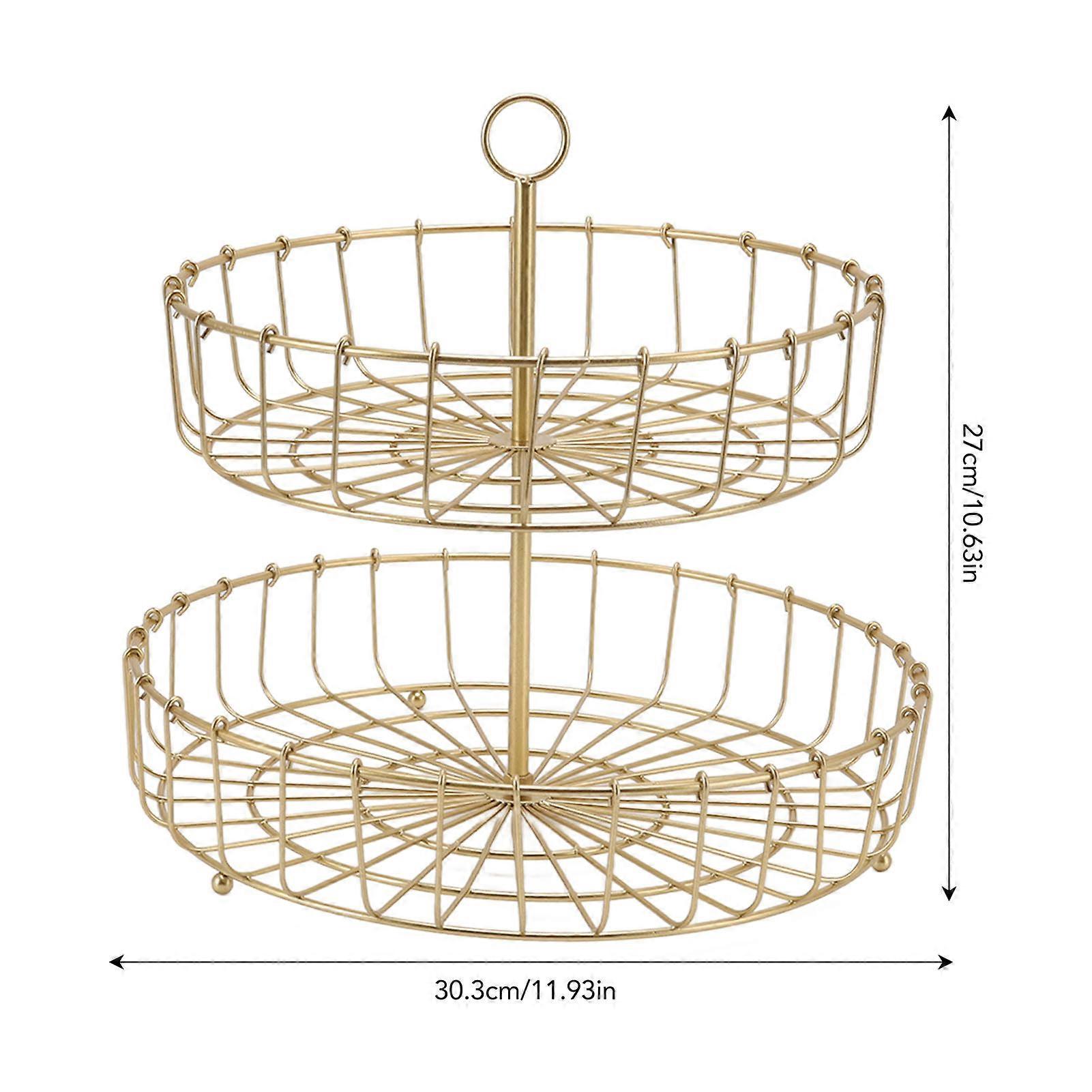 2 Tier Fruit Basket,Iron Round Golden Nordic Household Snack Storage Tray for Party Desktop Kitchen Countertop