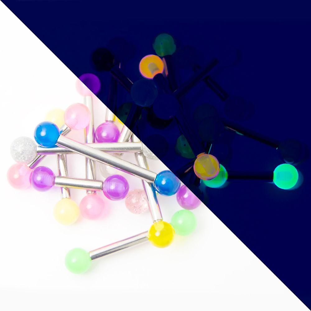20 Straight piercing barbells - glitter, acrylic, uv glow - assorted ga/lengths