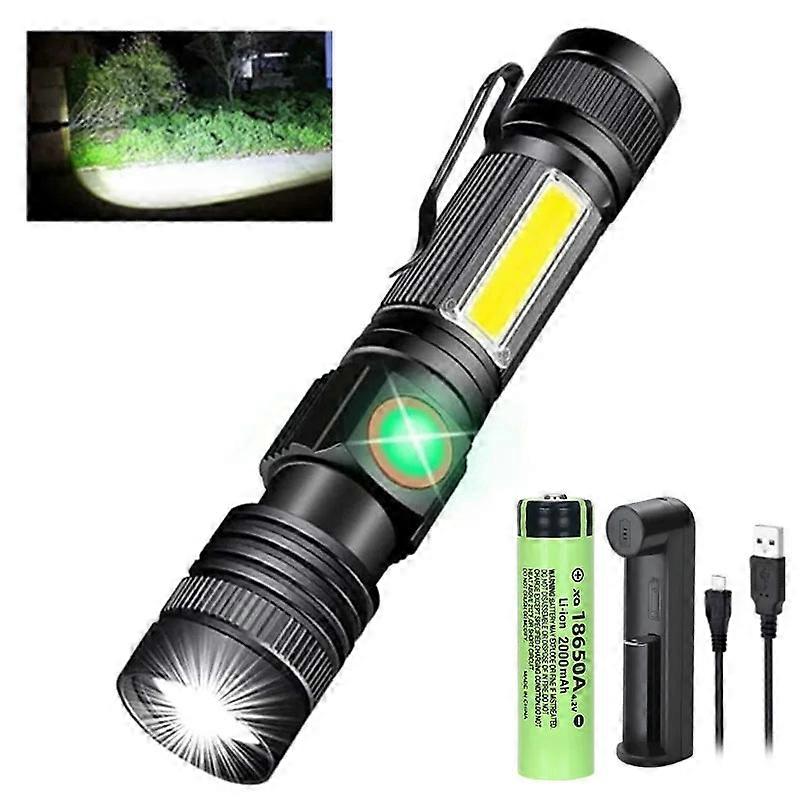 2000lm Ultra Bright Usb Rechargeable Led Flashlight For Camping, Working,