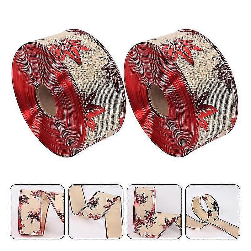 200X6.3cm Maple Leaf Ribbons & Trim 1 Set 2 Pcs 2m Christmas Gift Wrapping Tapes Cake Packing Ribbon