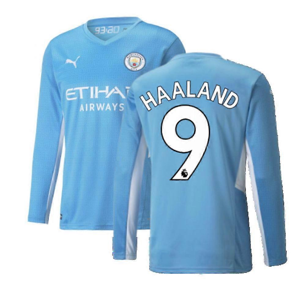 2021-2022 Man City Long Sleeve Home Shirt (HAALAND 9)
