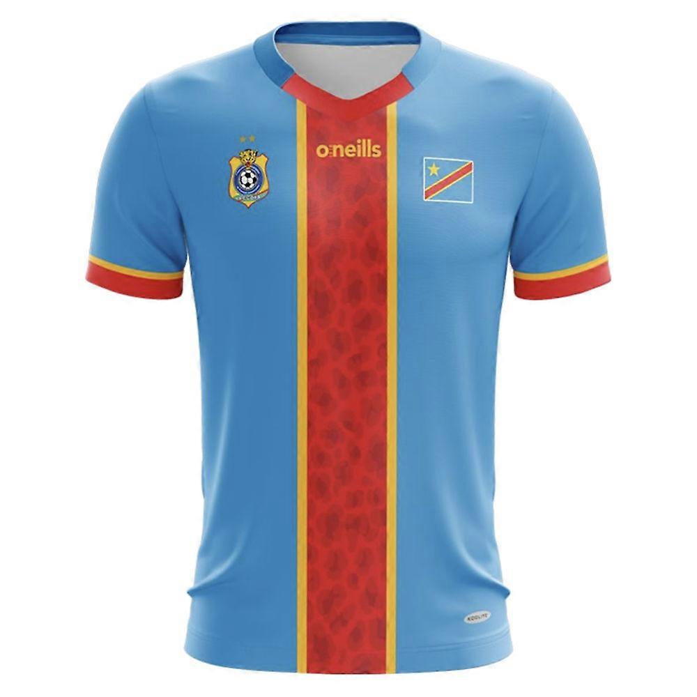 Celebrate the passion and spirit of Congolese football with this official Democratic Republic of Congo home jersey from O\'Neills. Crafted for true supporters, this striking kit captures the essence of Les Lopards with authentic design and superior comfort.Key FeaturesAuthentic Design Features the iconic sky blue colourway synonymous with the DRC national team, complete with official team crest and O\'Neills branding.Premium Performance Fabric Engineered with moisture-wicking technology to keep you cool and dry whether you\'re cheering from the stands or playing on the pitch.Superior Comfort Lightweight, breathable construction ensures all-day comfort during matches and casual wear.Personalisation Available Make it uniquely yours Add your name, favourite player\'s name, or chosen number to create a truly bespoke jersey that stands out from the crowd.PersonalisationName & Number - Customise your jersey with the name and number of your favourite Congo player or even your own name. We can print name in the same style worn by the players.