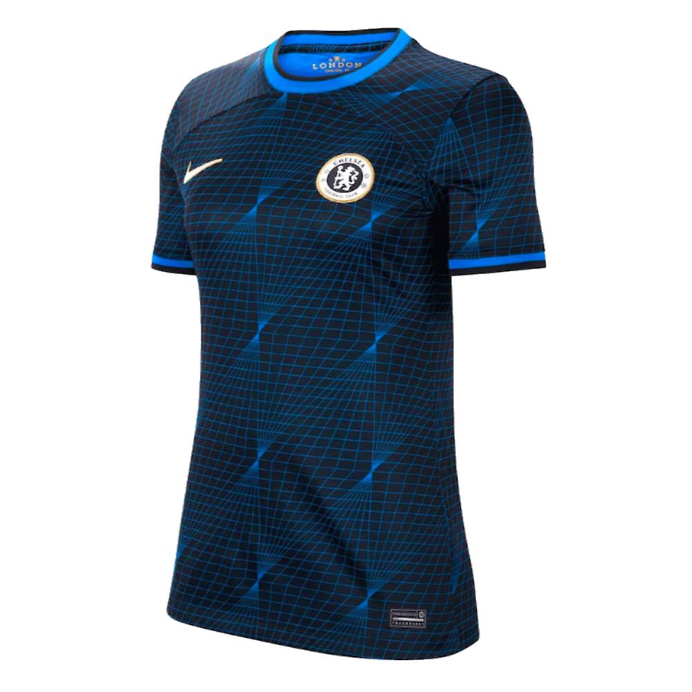 Who doesn\'t love an early 2000s throwback Coming to you all the way from 2002, the 2023-2024 Chelsea Away women\'s shirt mixes classic colours and an all-over digital graphic with blue accents on the collar and sleeves. Inside, you will find a hidden London Chelsea F.C. design on the inner pride. Our Stadium collection pairs replica design details with sweat-wicking technology to give you a game-ready look inspired by your favourite team.PersonalisationName & Number - Customise your jersey with the name and number of your favourite Chelsea player or even your own name. We can print name in the same style worn by the players.