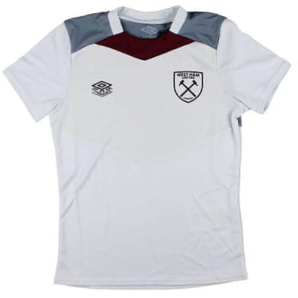 The West Ham 2024-2025 Umbro Training Jersey in Arctic Ice for kids combines performance with a cool, crisp look. Made from high-quality moisture-wicking fabric, it keeps young athletes dry and comfortable during their training sessions. The jersey features a sleek Arctic Ice colour with the West Ham club crest proudly displayed on the chest, complemented by the Umbro logo. Its lightweight, breathable material ensures excellent ventilation and freedom of movement, making it perfect for both intense training and everyday wear. Designed to keep kids stylish and focused, this jersey is a standout choice for any young West Ham fan.PersonalisationName & Number - Customise your jersey with the name and number of your favourite West Ham player or even your own name. We can print name in the same style worn by the players.