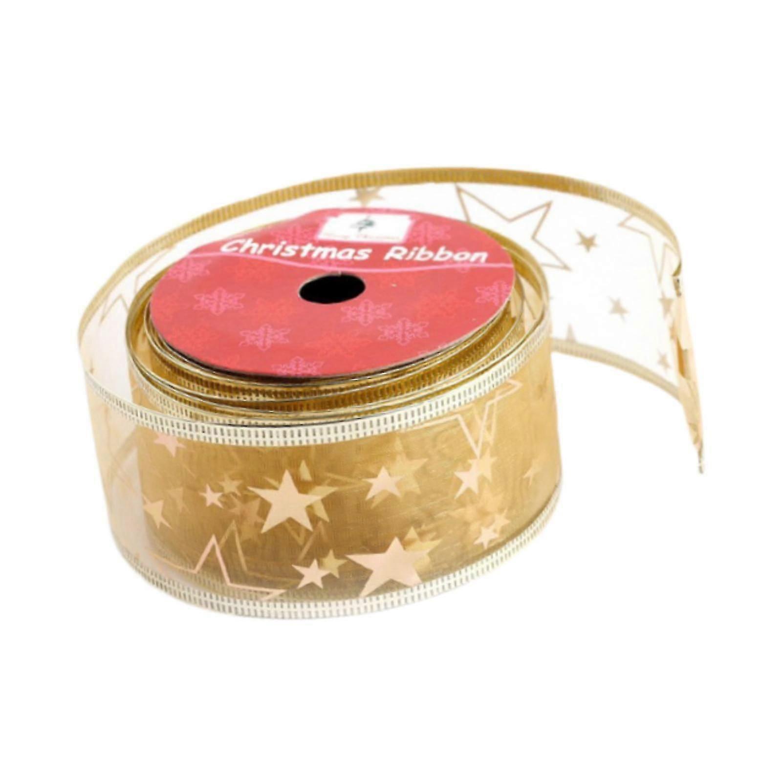 2024 Christmas Ribbon DIY Gift Wrapping Ribbon for Gift Packaging Decoration Golden