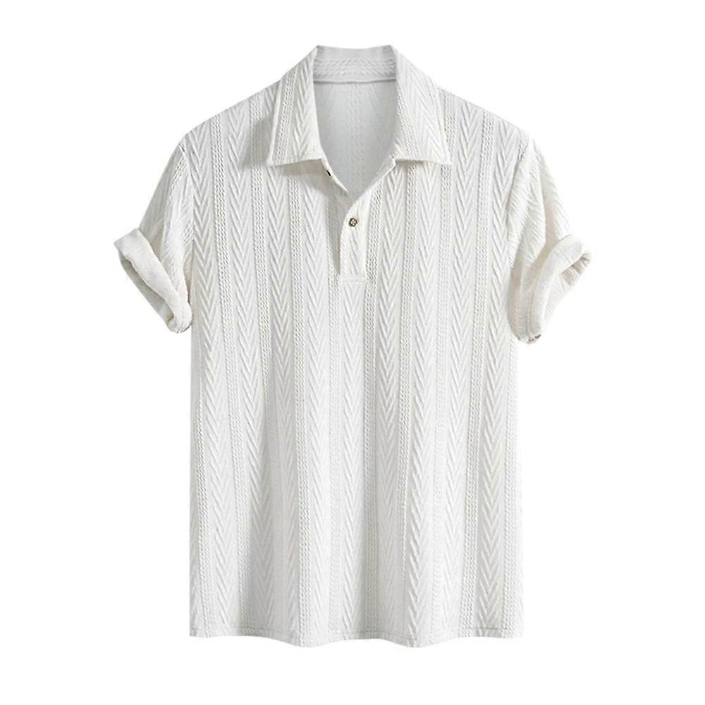 2024 Men's Solid Color Jacquard Polo Collar T-shirt, Half Button, Short Sleeve