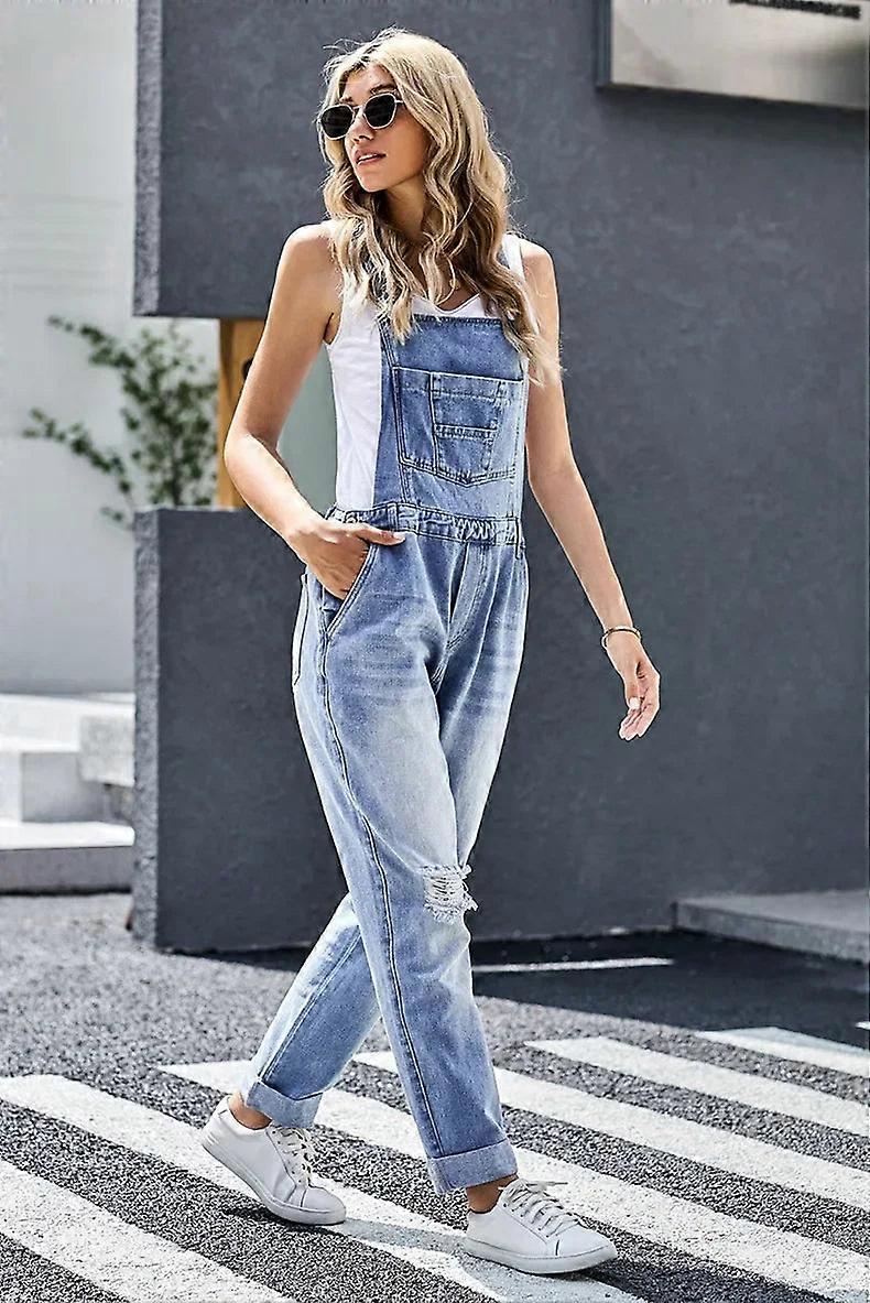 2024 Summer Women's Distressed Washed Slim Fit Jumpsuit Strap Pants. Elevate Your Streetwear Collection with This Chic Jumpsuit, Designed for Juniors and Crafted from High-quality Knitted Polyester. Perfectly Tailored to Provide a Flattering Fit, This Solid-pattern Jumpsuit Ensures Comfort and Style Through All Seasons. Its Sleek Design Makes It a Versatile Choice for Any Casual Outing or Fashionable Event. Features: - Age: Junior - Material: Polyester - Fabric Type: Knitted - Gender: Women - Item Type: Jumpsuit - Pattern Type: Solid - Style: Streetwear - Season: All Seasons. Your order tracking code will be sent on shipping and takes up to 5 days to show live information.