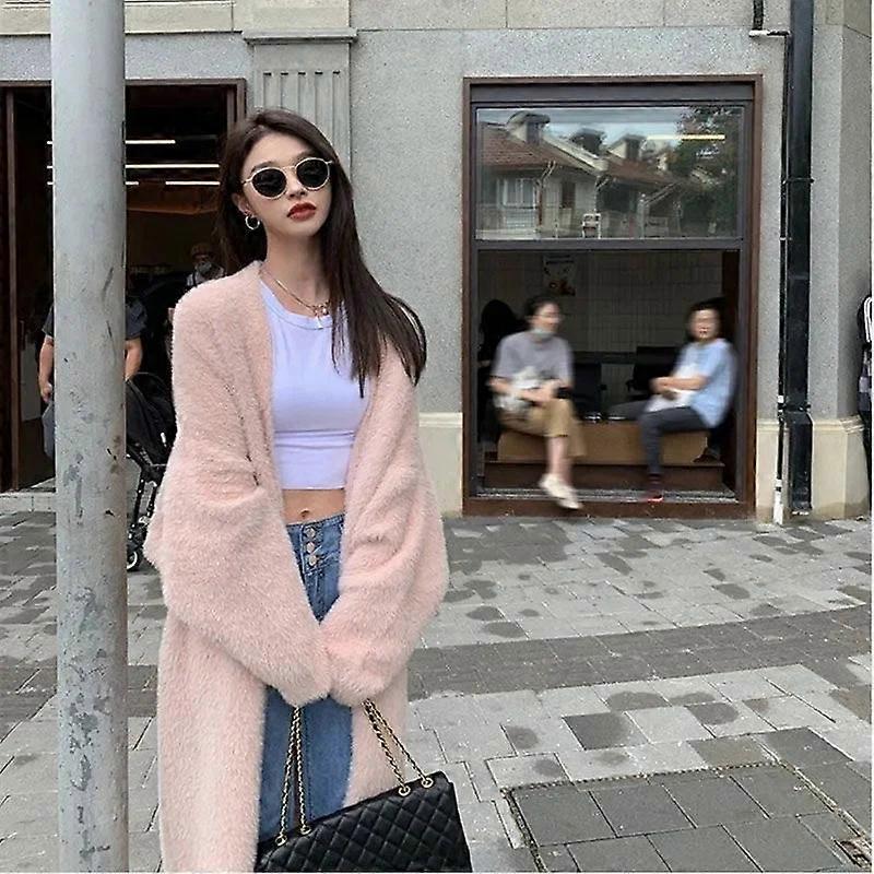 2024 White Faux Mink Long Cardigan Coat For Autumn/winter - Loose Fit, Thick