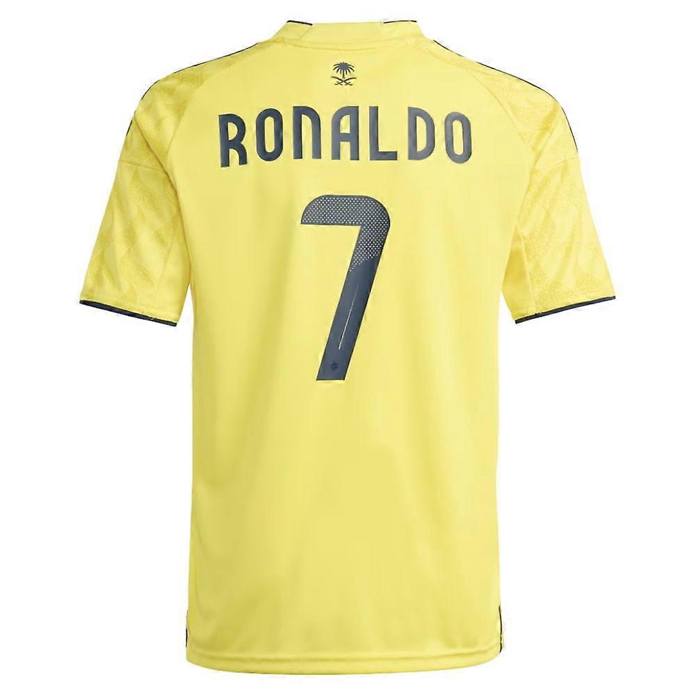 Experience the phenomenon of Cristiano Ronaldo in the colours of Al-Nassr with this official 2025/26 home jersey by Adidas. Adorned in the club\'s distinctive yellow and blue, this is more than a football shirt it\'s a piece of footballing history as one of the game\'s greatest players continues his legendary career in Riyadh.Product HighlightsCrafted by Adidas with their renowned attention to detail, this striking home jersey features Al-Nassr\'s vibrant yellow base colour with bold blue accents that command attention both on and off the pitch. The modern design incorporates the club\'s heritage whilst embracing contemporary football aesthetics, with the iconic Al-Nassr crest positioned proudly on the chest and Adidas\' legendary three stripes adorning the shoulders.Engineered with Adidas\' cutting-edge AEROREADY technology, this jersey wicks moisture away from your skin to keep you dry and comfortable throughout the match. The lightweight, breathable fabric ensures optimal ventilation whether you\'re at Mrsool Park, playing with mates, or representing Al-Alami on the streets.Featuring Ronaldo\'s Name and NumberThis jersey comes with Cristiano Ronaldo\'s official name and number 7 on the back in professional Saudi Pro League lettering. Celebrate CR7\'s remarkable journey as he lights up the Middle Eastern football scene with his unparalleled skill, dedication, and winning mentality.