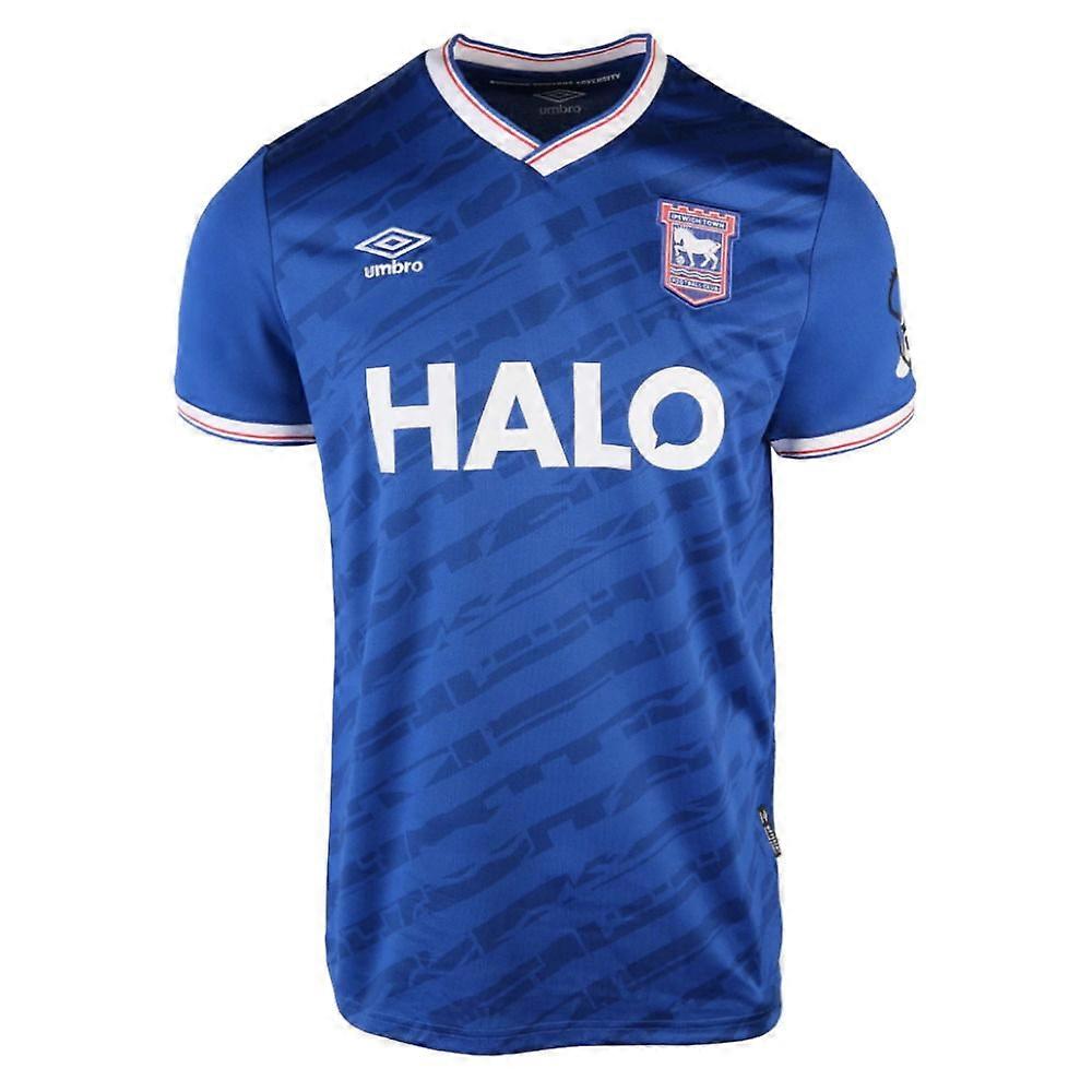 Show your support for the Tractor Boys with the official 2025/26 Ipswich Town home shirt from Umbro. This classic design celebrates the club\'s rich heritage whilst embracing modern performance technology.Crafted with Umbro\'s advanced moisture-wicking fabric, this shirt keeps you comfortable whether you\'re cheering from the stands at Portman Road or playing a kickabout in the park. The traditional blue colourway honours Ipswich Town\'s iconic identity, featuring the club\'s distinctive crest proudly displayed on the chest.Key Features:Official Ipswich Town FC merchandisePremium Umbro construction with performance fabric technologyClassic blue home coloursEmbroidered club crestComfortable regular fit suitable for matchday or casual wearAvailable for personalisation with player names and numbersPersonalisation Options: Make this shirt uniquely yours by adding your favourite player\'s name and number, or customise it with your own name for that personal touch. Perfect for devoted Blues supporters of all ages, this shirt represents more than just football kit, it\'s a symbol of your passion for Ipswich Town FC.PersonalisationName & Number - Customise your jersey with the name and number of your favourite Ipswich player or even your own name. We can print name in the same style worn by the players.