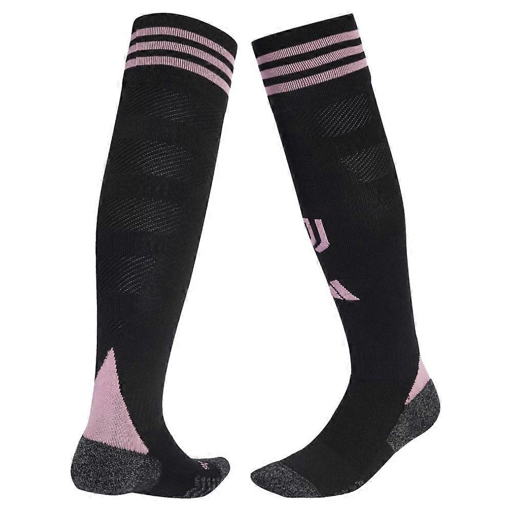 Football tradition with a twist. These Juventus socks are part of a bold adidas home kit that plays with the Turin club\'s famous stripes. Adaptive FORMOTION follows your foot\'s natural movement for an enhanced fit when you\'re on the go. Impossible to miss, a bright pink club logo stars on the front.