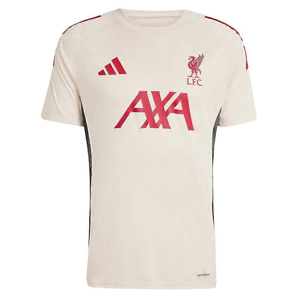 Give your young Red the professional training experience with this crisp white Liverpool FC Tiro 25 Competition Training Jersey. Designed specifically for aspiring footballers, this isn\'t just training gear it\'s the foundation for building tomorrow\'s Liverpool legends, featuring the same technical excellence that drives elite performance.Competition-Level Training for KidsPart of adidas\' prestigious Tiro 25 Competition range, this training jersey brings professional-grade features to young athletes. Whether they\'re perfecting their skills at football practice, playing with friends, or simply showing their Liverpool pride, this jersey delivers the performance and comfort active kids need.Kid-Friendly Performance TechnologyAEROREADY for Young Athletes: Advanced moisture-managing technology keeps young players cool and comfortable during intensive training sessions, playground kickabouts, and everything in between.Strategic Ventilation: Carefully positioned mesh panels provide optimal airflow exactly where growing athletes need it most, ensuring they stay focused on their game.Freedom of Movement: Specially designed cut allows complete mobility for developing football skills from quick turns to powerful shots.Durable yet Comfortable: Built to withstand playground adventures while maintaining the soft, comfortable feel kids love.Authentic Liverpool ConnectionOfficial Club Pride: Features genuine Liverpool FC and adidas branding, connecting young supporters to the same training excellence used at the club\'s world-class facilities.Professional Standards: The same Tiro quality trusted by elite teams worldwide, now sized perfectly for the next generation.Clean White Design: The pristine white colorway creates a fresh, modern look that stands out on any training ground or playground.Built for Active Young LivesEasy Care for Parents: Machine washable and designed to maintain its bright white appearance and performance properties through countless washes.Versatile Styling: Perfect for football training, PE lessons, casual wear, or any active pursuit where comfort and mobility matter.Growing Room: Thoughtfully designed fit accommodates young athletes\' active lifestyles while allowing room for growth.Playground Tough: Constructed to handle the rough and tumble of youth football while keeping its shape and color.Environmental Responsibility100% Recycled Materials: Made entirely from recycled polyester, teaching young athletes that excellence and environmental care go hand in hand.Sustainable Future: Helping build environmentally conscious habits while pursuing sporting excellence.Perfect for Every Young RedIdeal for:Youth football team training sessionsSchool PE and sports activitiesLiverpool FC academy trainingCasual wear that showcases club prideBuilding a complete Liverpool training kitSize and FitDesigned with a true-to-size fit specifically for children and teenagers. The unisex design works perfectly for all young Liverpool supporters, providing comfort and style regardless of their football experience level.Complete the LookPair with matching Tiro 25 Competition training shorts and other Liverpool FC kids\' training essentials to create a professional, coordinated look that shows serious commitment to the beautiful game.PersonalisationName & Number - Customise your jersey with the name and number of your favourite Liverpool player or even your own name. We can print name in the same style worn by the players.