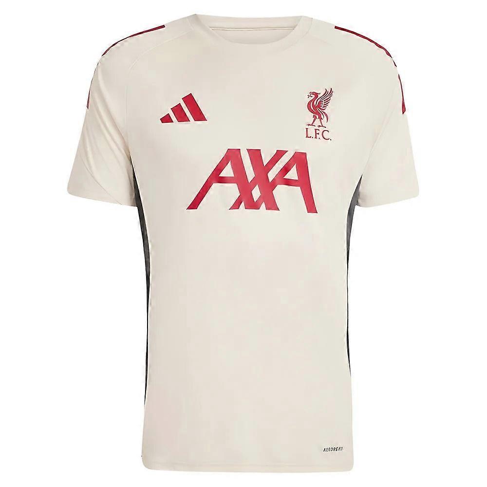 Embrace training with pristine focus in the Liverpool FC Tiro 25 Competition Training Jersey in white. This crisp, professional training essential combines the legendary performance of the Tiro 25 Competition range with the clean aesthetic that serious athletes demand, creating the perfect foundation for peak performance and Liverpool pride.Competition-Ready in Classic WhiteThe immaculate white colorway brings a fresh perspective to elite training gear, offering the same cutting-edge technology that drives professional performance while delivering the clean, confident look that sets champions apart. Whether you\'re perfecting technique or pushing physical limits, this jersey provides the technical edge you need.Advanced Performance TechnologyAEROREADY Excellence: State-of-the-art moisture-managing technology maintains optimal comfort during high-intensity training, keeping you cool, dry, and completely focused on performance when every session counts.Strategic Mesh Ventilation: Precisely engineered mesh panels deliver targeted airflow exactly where you need it most, ensuring superior temperature regulation during intensive drills and conditioning work.Professional Mobility: Purpose-built for football with an athletic cut that provides unrestricted movement for every skill from precise passing to explosive acceleration.Championship Durability: Constructed to maintain its pristine appearance and peak performance through countless training sessions and washes.Liverpool FC Training DNAOfficial Performance Standards: Features authentic Liverpool FC and adidas branding, connecting you to the same training excellence that fuels success at the AXA Training Centre and beyond.Tiro Legacy: Part of the world-renowned Tiro collection that has equipped elite athletes across the globe, now enhanced with Liverpool\'s winning mentality.Clean Professional Aesthetic: The pure white design creates a sophisticated training look that transitions seamlessly from pitch to lifestyle wear.Sustainable Championship Quality100% Recycled Construction: Crafted entirely from recycled materials, proving that environmental responsibility and peak performance are perfectly aligned. Every training session supports both your goals and the planet\'s future.Long-Lasting Performance: Built to withstand the demands of serious training while maintaining its shape, color integrity, and technical properties season after season.Versatile Training ExcellenceIdeal for:Professional-level football training and conditioningFitness workouts and cross-training sessionsTeam practice and individual skill developmentSmart casual wear that showcases Liverpool commitmentLayering foundation for complete training systemsPerfect Fit PhilosophyDesigned with a true-to-size athletic fit that balances performance and comfort. The clean white base with Liverpool FC branding creates a premium look that commands respect both on the training ground and in everyday settings.Complete Your Training ArsenalCoordinate with matching Tiro 25 Competition training shorts in white or black, plus other Liverpool FC training essentials to build a comprehensive kit that demonstrates your serious approach to football excellence.Training Ground to StreetThe sophisticated white design makes this jersey equally at home during intensive training sessions and casual outings where you want to represent Liverpool with style and confidence.PersonalisationName & Number - Customise your jersey with the name and number of your favourite Liverpool player or even your own name. We can print name in the same style worn by the players.