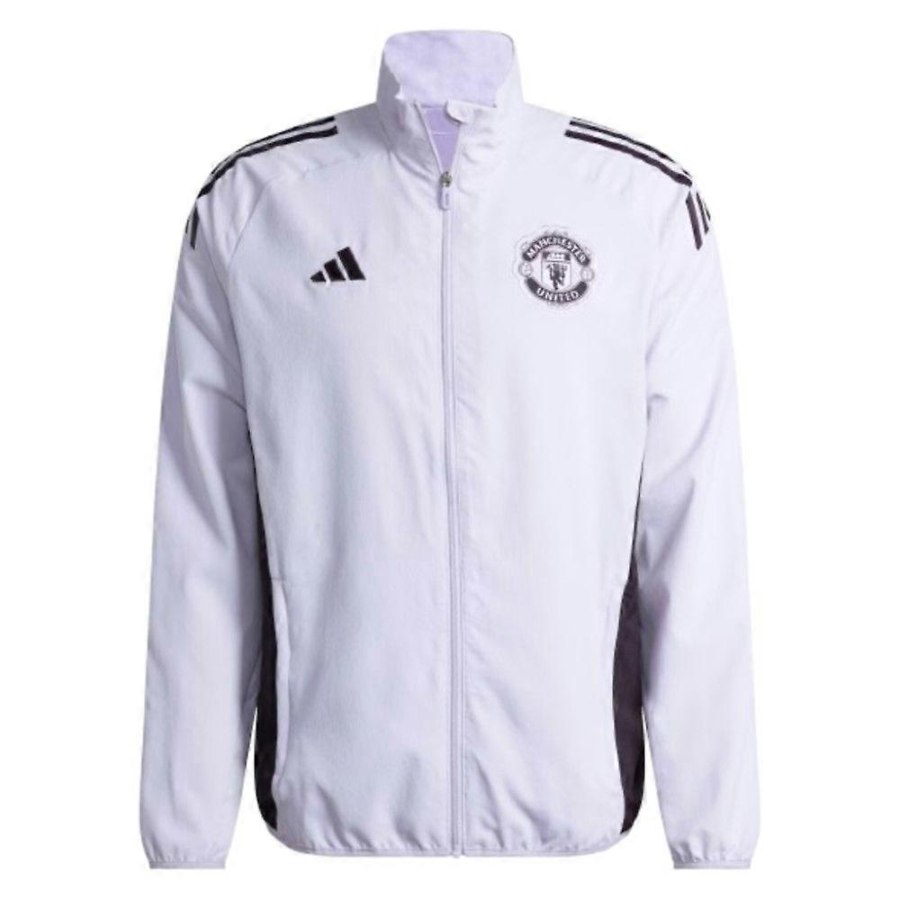 Step out in style with the official Manchester United 2025/26 Adidas Presentation Jacket in stunning Purple Tint. This premium jacket combines cutting-edge design with the legendary heritage of one of football\'s most iconic clubs.Authentic Match-Day StyleWorn by the players themselves during pre-match warm-ups and post-match presentations, this jacket brings you closer to the action at Old Trafford. The eye-catching purple tint colourway represents a bold new chapter in United\'s storied history, making this a must-have piece for any serious Red Devils supporter.PersonalisationTrainers Personalisation - Customise your item by adding your initials or squad number.