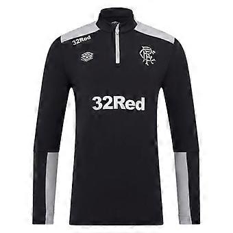 Step up your training regime with the official Rangers 2025-2026 Pro Training Midlayer Top. This sophisticated piece combines professional performance with unmistakable club pride, featuring a sleek caviar black base elevated by striking micro chip grey contrast panels.Key FeaturesProfessional Design Crafted in the same style worn by Rangers\' first-team squad, this midlayer showcases a contemporary colour palette that exudes confidence both on the training pitch and off. The rich caviar black foundation is perfectly complemented by crisp micro chip grey accents across the shoulders, collar, and sleeve panels, creating a modern aesthetic that stands out from the crowd.Premium Construction Built to Umbro\'s exacting Pro standards, this training top features a practical quarter-zip design with contrast white zipper for easy temperature regulation during intensive sessions. The structured collar and tailored fit ensure you look as sharp as you perform.Authentic Club Details Proudly displaying the iconic Rangers FC crest on the chest alongside Umbro\'s distinctive diamond logo, this midlayer is completed with prominent 32Red sponsorship branding - making it an authentic representation of the club\'s current training kit.Versatile Performance Whether you\'re warming up before a match, training with your local side, or simply showcasing your Rangers allegiance around town, this midlayer delivers the perfect balance of style and functionality. The strategic panel construction allows for enhanced freedom of movement whilst maintaining a smart, professional appearance.Technical SpecificationsColourway: Caviar/Micro ChipFit: Tailored athletic cutClosure: Quarter-zip with contrast detailingFeatures: Structured collar, contrast panels, authentic club brandingSeason: 2025-2026Manufacturer: UmbroPersonalisationTrainers Personalisation - Customise your item by adding your initials or squad number.