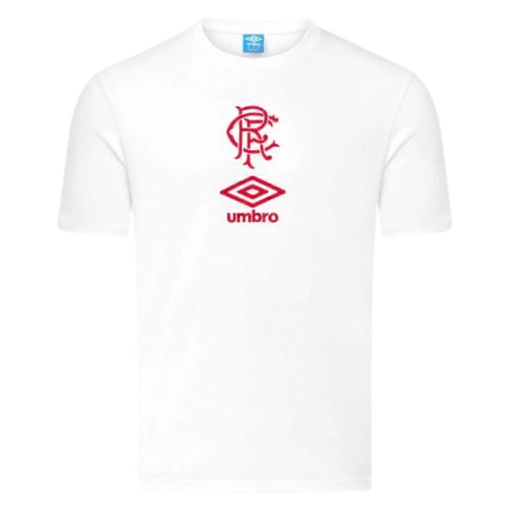 Show your Rangers pride wherever your travels take you with this official 2025-2026 season travel tee from Umbro. This crisp white tee features the iconic Rangers FC crest prominently displayed on the chest, whilst the back showcases RANGERS in bold red lettering alongside the distinctive Umbro diamond logo.Crafted for comfort and durability, this travel tee is perfect for supporting the Gers on matchdays, casual wear, or as part of your travel wardrobe. The clean white base with striking red detailing embodies the classic Rangers colours that fans know and love.Key Features:Official Rangers FC merchandise for the 2025-2026 seasonClassic white tee with red Rangers crest and brandingUmbro branding on front and backComfortable crew neck designPerfect for travel, casual wear, or showing your supportWhether you\'re following Rangers across Scotland or simply want to display your allegiance in style, this travel tee is an essential addition to any Bears supporter\'s wardrobe.PersonalisationName & Number - Customise your jersey with the name and number of your favourite Rangers player or even your own name. We can print name in the same style worn by the players.