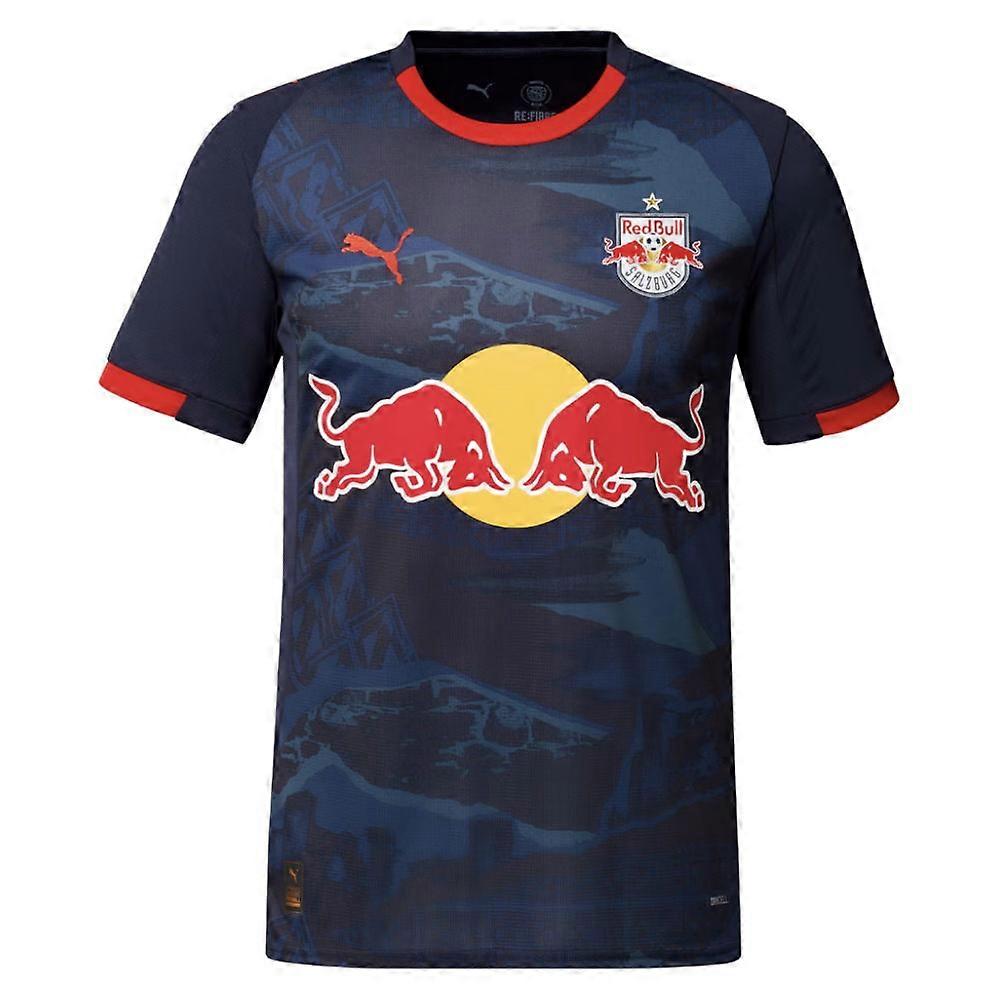 The FC Red Bull Salzburg x PUMA Away Jersey 2025-2026 for men. Featuring the iconic Hohenfestung Salzburg to keep that Soizburg pride close by, the new Away Jersey is ready for action. Built with dryCELL for performance and made from at least 95% recycled textile waste as part of PUMA\'s RE:FIBRE program, it blends comfort, freshness and styleperfect for the football of tomorrow.PersonalisationName & Number - Customise your jersey with the name and number of your favourite Red Bull Salzburg player or even your own name. We can print name in the same style worn by the players.