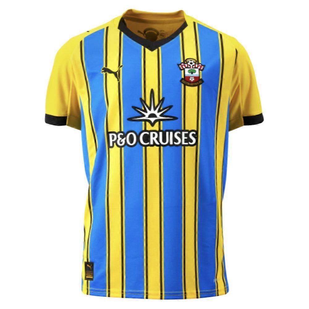 Let young Saints fans show their colours on the road with the bold and stylish 2025-2026 Southampton Away Shirt by Puma in a junior fit. Inspired by the spirit of away days and the clubs proud heritage, this kids\' shirt features a fresh seasonal design alongside all the details of the first teams match kit.Crafted with lightweight, breathable Puma dryCELL technology, its designed to keep youngsters cool and comfortable, whether they\'re playing, training, or cheering on the team from home or the stands. With the Southampton club crest, Puma logo, and a dynamic colourway, its a must-have for young fans.Add a personal touch with custom name and number printing, perfect for creating a shirt thats uniquely theirs, or backing their favourite player.PersonalisationName & Number - Customise your jersey with the name and number of your favourite Southampton player or even your own name. We can print name in the same style worn by the players.