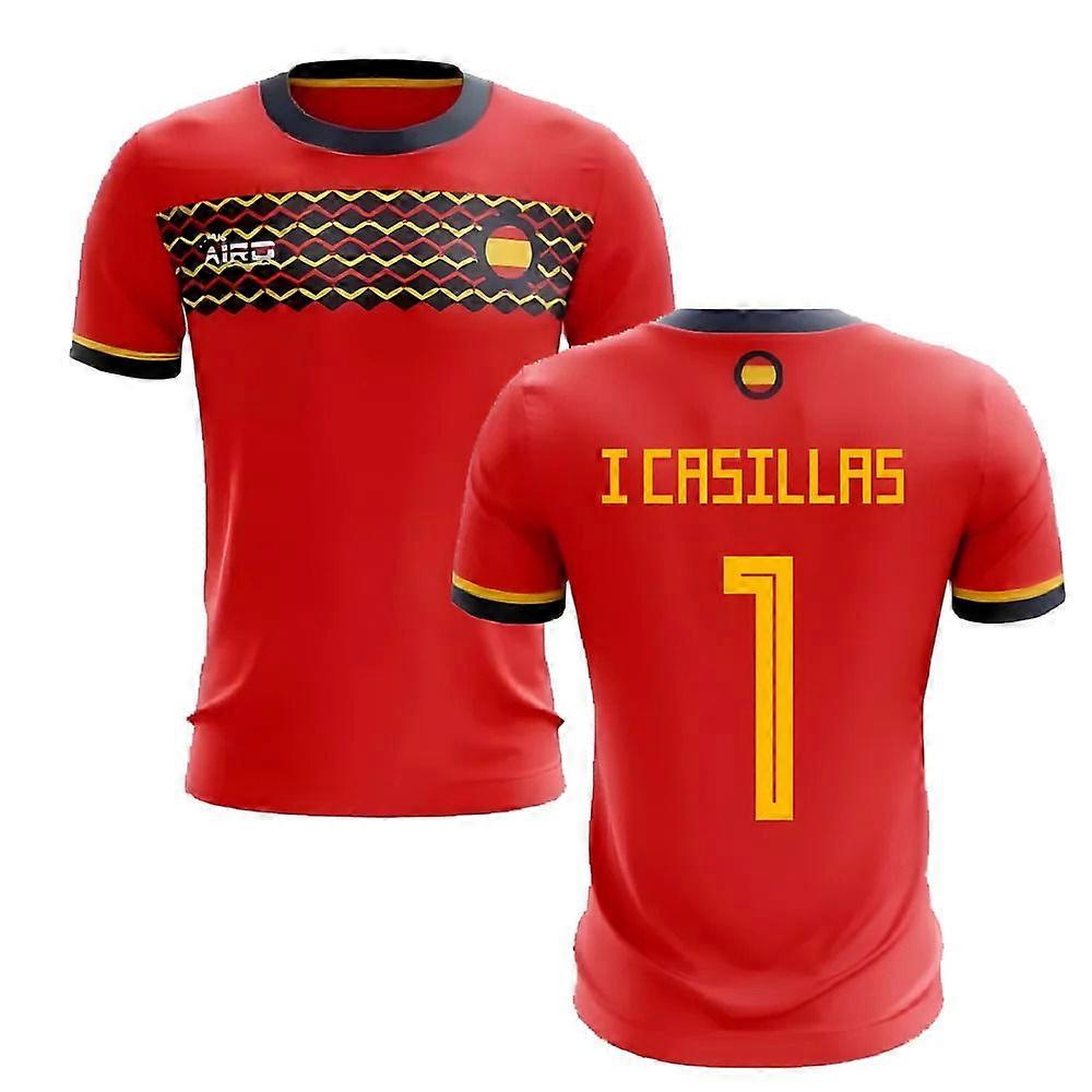 Iker Casillas football shirt.. This is the new Spain Home Concept shirt for 2019-2020 which is manufactured by Airo and is available in adult sizes S, M, L, XL, XXL, XXXL, XXXXL, XXXXXL and kids sizes small boys, medium boys, large boys, XL boys.   Concept Kits are unofficial, supporter design jerseys which are not affiliated with the team or worn by the players