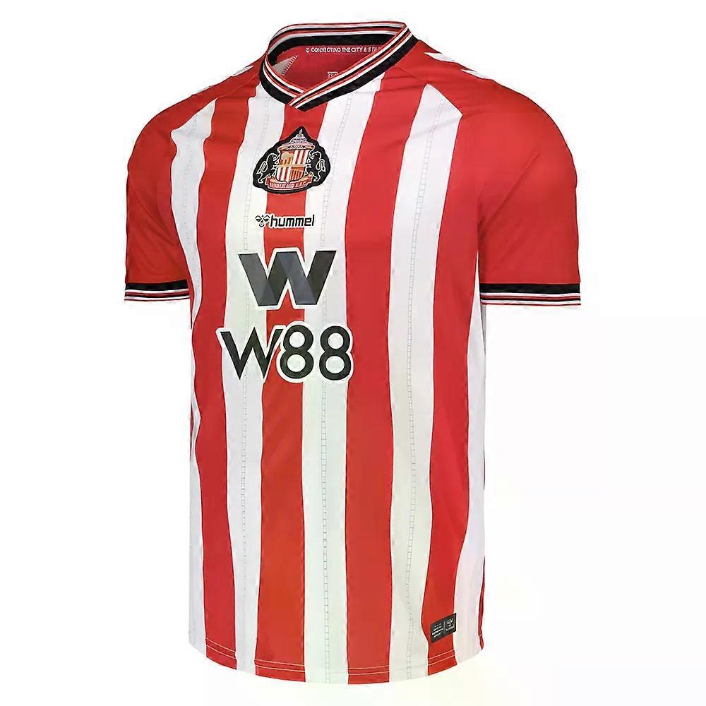 Show your Black Cats pride with the official Sunderland AFC home shirt for the 2025/26 season. Crafted by renowned sportswear brand Hummel, this authentic replica jersey combines classic design with modern performance technology.Key Features:Official Sunderland AFC home kit for 2025/26 seasonPremium Hummel construction with moisture-wicking fabricClassic red and white striped design celebrating the club\'s heritageComfortable regular fit suitable for matchday or casual wearOfficially licensed with authentic club badges and detailingPersonalisation Options: Make this shirt uniquely yours with our personalisation service. Add your name, favourite player\'s name, or any text of your choice along with your preferred number (0-99). PersonalisationName & Number - Customise your jersey with the name and number of your favourite Sunderland player or even your own name. We can print name in the same style worn by the players.