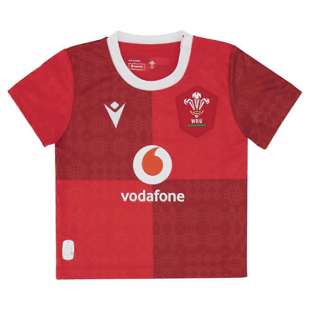 Wales Infants Home Rugby Kit 2025/26 - RedStart Your Little Dragon\'s Rugby Journey in StyleIntroduce your youngest Wales supporter to the passion and pride of Welsh rugby with the official Wales Infants Home Rugby Kit for the 2025/26 season. This authentic replica shirt captures all the spirit of the national team in a design perfectly tailored for your little one\'s comfort and style.Product HighlightsAuthentic Team PrideOfficial Wales rugby crest prominently displayed on the left chestPremium Macron logo on the right chest, showcasing the official team supplier partnershipTraditional Welsh red colorway that matches the senior team kitComfort-First Design100% polyester construction ensures durability and easy careLightweight, breathable fabric keeps little ones comfortable during playSoft-touch material designed specifically for sensitive infant skinMachine washable for hassle-free maintenancePerfect for Future Supporters Whether you\'re planning their first trip to the Principality Stadium or want them representing Wales at home, this kit is designed to nurture their love for Welsh rugby from the very beginning. It\'s more than just clothing it\'s the start of a lifelong passion for the red jersey.Size GuideThe kit features an age-based sizing system designed to accommodate growing infants and toddlers:Care InstructionsMachine washable100% polyester for easy maintenanceRetains color and shape wash after washPerfect for active little supportersWhy Choose This Kit Official Authenticity: This isn\'t just rugby-inspired clothing it\'s the official replica of what the Wales national team wears, ensuring your child is wearing genuine team merchandise.Quality Construction: Made by Macron, the official kit supplier for Wales rugby, guaranteeing professional-grade quality and attention to detail.Gift-Perfect: Ideal for baby showers, birthdays, or introducing a new Welsh rugby fan to the family tradition.Stadium Ready: Perfect for those special first matches at the Principality Stadium or watching the Six Nations at home.Product SpecificationsBrand: Macron (Official Wales Rugby Supplier)Material: 100% PolyesterColor: Traditional Welsh RedFeatures: Wales crest, Macron logoSeason: 2025/26 Official Home KitCategory: Infant/Toddler Rugby ApparelStart building those precious rugby memories and Welsh pride from day one with this beautiful official kit. Your little dragon will be ready to roar with the crowd PersonalisationName & Number - Customise your jersey with the name and number of your favourite Wales player or even your own name. We can print name in the same style worn by the players.