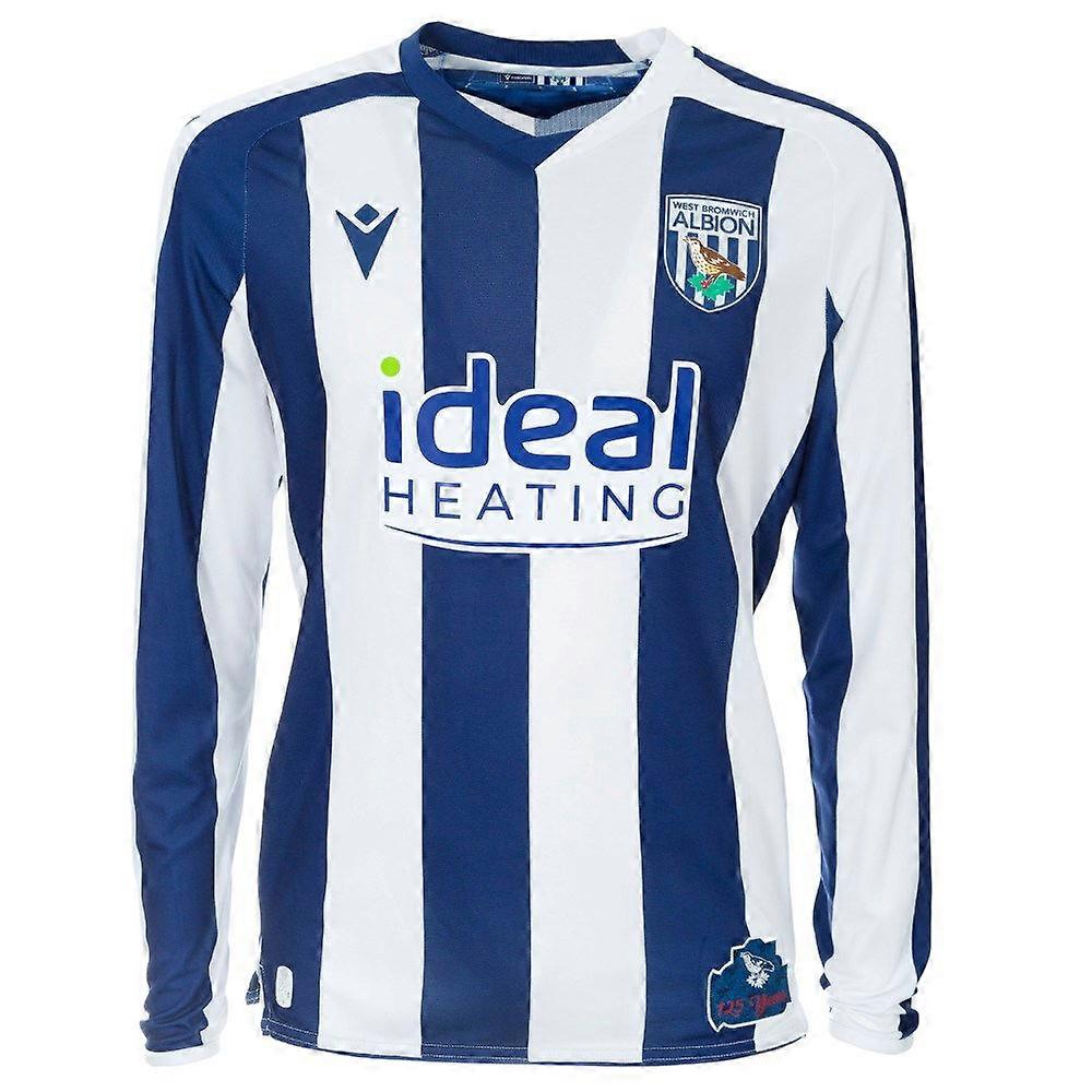 Stay sharp and show your loyalty in every season with the 2025-2026 West Bromwich Albion Home Shirt Long Sleeve. Featuring the clubs iconic navy and white stripes, this official long-sleeve jersey combines classic style with added coverage for cooler days on and off the pitch.Made from lightweight, breathable fabric with moisture-wicking technology, it ensures all-day comfort whether youre cheering from the stands or training outdoors. The embroidered West Bromwich Albion crest proudly takes centre stage, representing tradition and pride.Official 2025-2026 West Brom long-sleeve home shirtClassic navy and white striped designLightweight, moisture-wicking fabric for warmth and comfortEmbroidered club crest and authentic detailingPerfect for fans who want to represent the Baggies with style and comfort no matter the weather.Boing Boing Baggies PersonalisationName & Number - Customise your jersey with the name and number of your favourite West Brom player or even your own name. We can print name in the same style worn by the players.