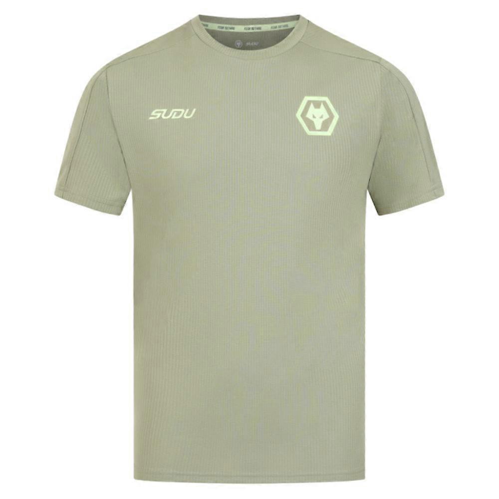 Travel in style with the official 2025-2026 Wolverhampton Wanderers players\' travel t-shirt from Sudu. This premium khaki tee is part of the squad\'s official travel collection, offering the same comfort and quality that the players enjoy on matchdays and beyond.Design & StyleFinished in a sophisticated khaki colourway, this travel t-shirt brings a contemporary edge to your Wolves wardrobe. The understated design makes it perfect for everyday wear whilst still showcasing your allegiance to the Old Gold. Whether you\'re heading to Molineux, travelling to an away fixture, or simply going about your day, this versatile piece seamlessly blends football culture with casual style.The shirt features subtle Wolves branding and the Sudu logo, creating a clean, modern aesthetic that reflects the club\'s professional image. It\'s the ideal addition to any supporter\'s collection smart enough for pre-match drinks yet comfortable enough for all-day wear.Quality & ComfortCrafted from premium materials, this players\' travel t-shirt delivers exceptional comfort and durability. The soft fabric ensures a relaxed fit that moves with you, whilst maintaining its shape wash after wash. Sudu\'s attention to detail means you\'re getting the same quality trusted by the first team squad.PersonalisationMake this travel t-shirt your own with our personalisation service. Add your name, your favourite player\'s name, or a special number to create a unique piece that showcases your individual support for Wolves.PersonalisationTrainers Personalisation - Customise your item by adding your initials or squad number.