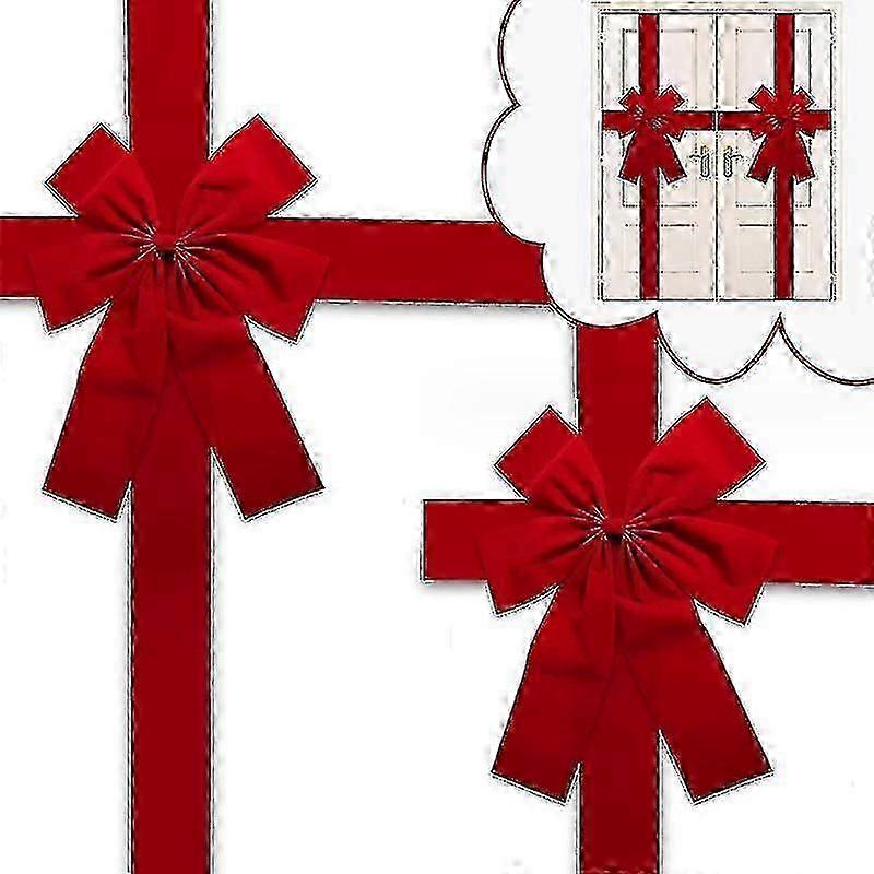 2025 2pcs Christmas Cabinet Big Bows Large Door Lace Christmas Tree Bow Ribbon Red And Green Bow Holiday Decorations Christmas Front Door Party Suppli