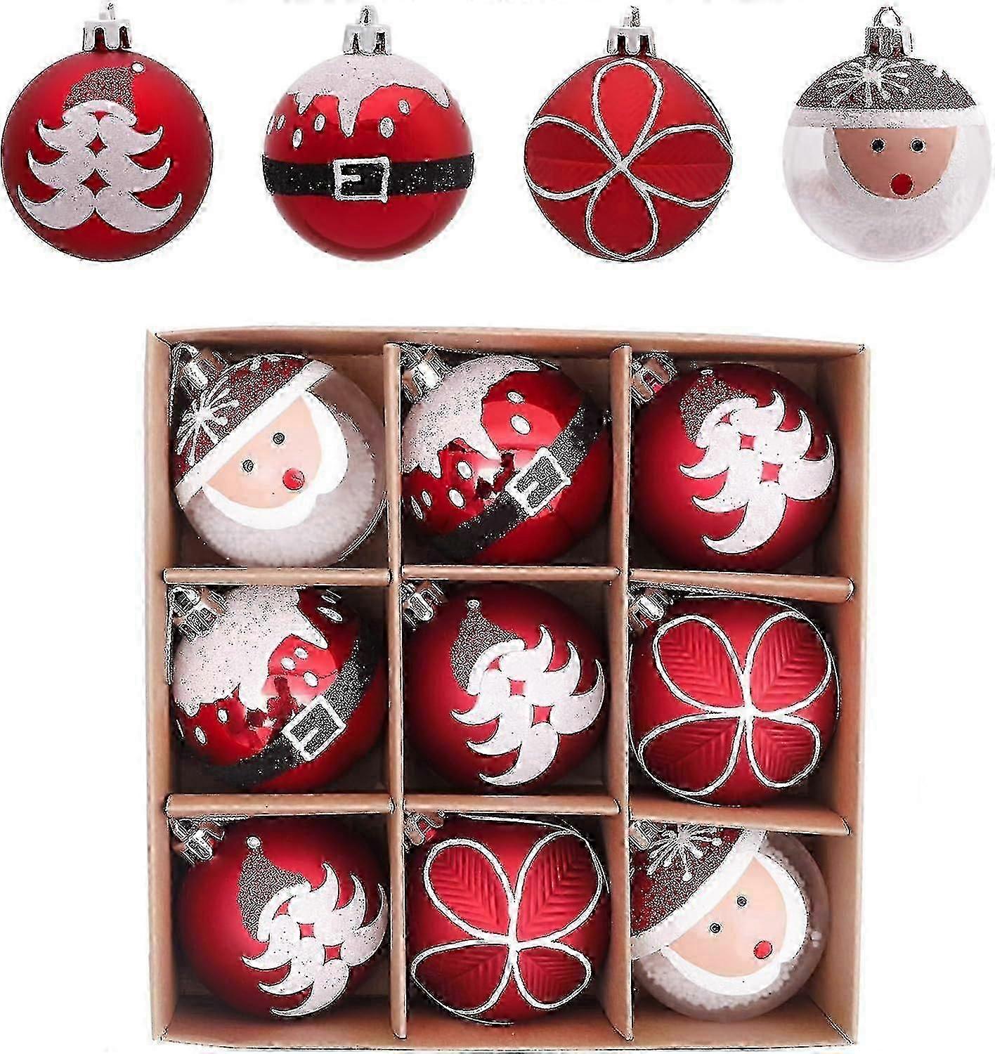 2025 9pcs 6cm Shatterproof Christmas Baubles,traditional Red And White Christmas Ball Ornaments For Christmas Tree Decorations
