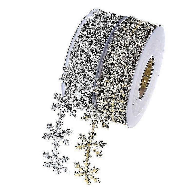 2025 Glitter Christmas Ribbon Christmas Ornament,snowflake Ribbon Lace Christmas Decoration Embossing Rib